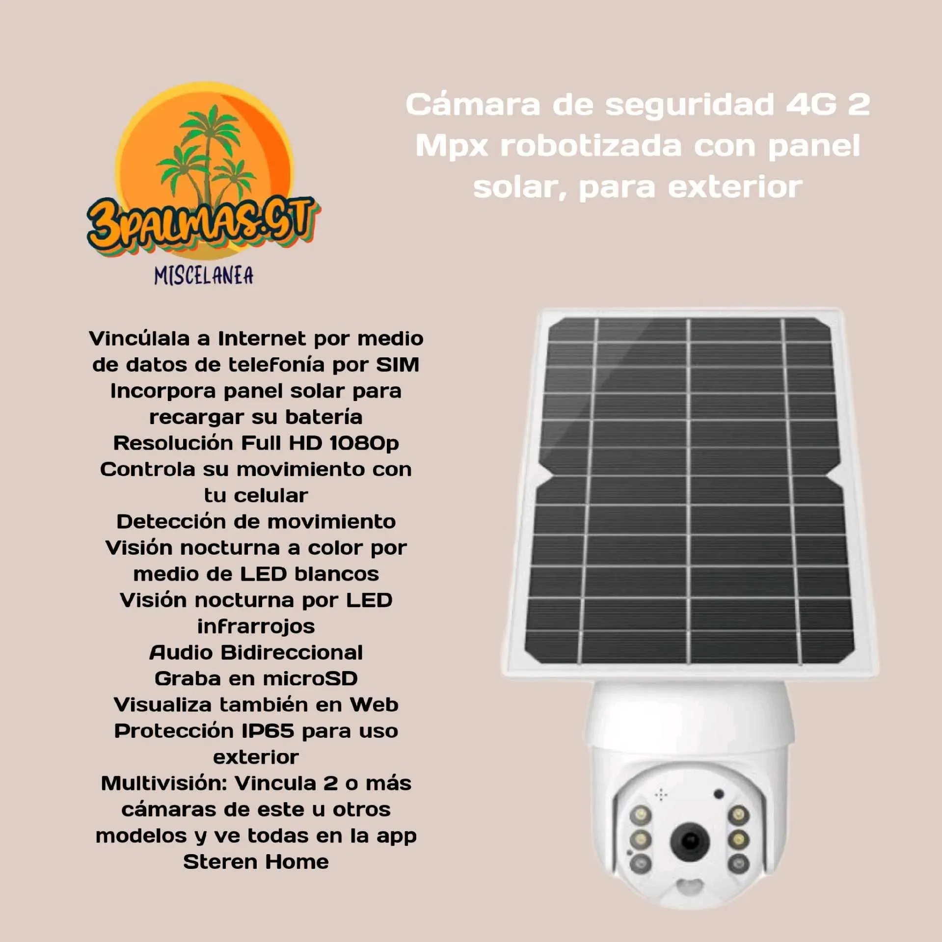 Cámara de seguridad 4G 2 Mpx robotizada con panel solar