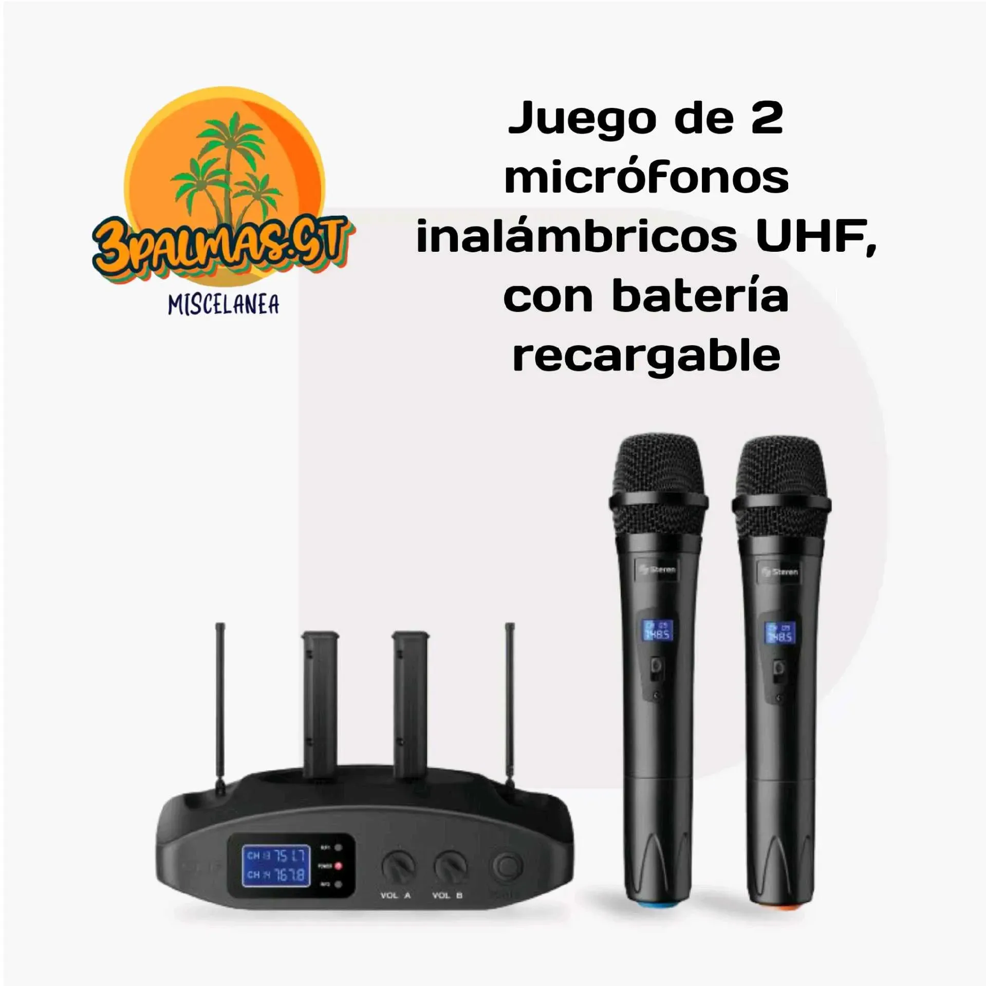Juego de 2 micrófonos inalámbricos UHF, con batería recargable