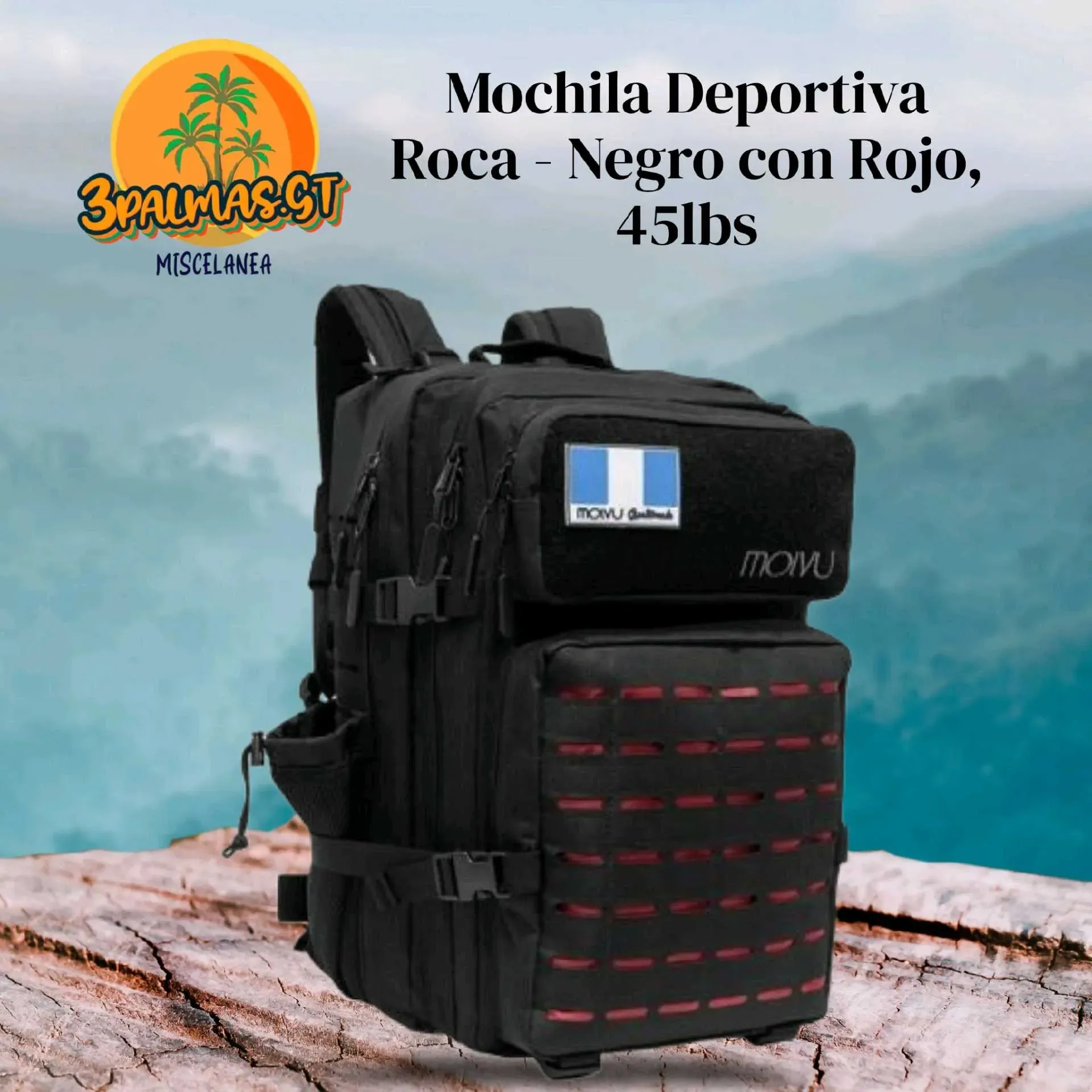Mochila Deportiva Roca - Negro con Rojo, 45lbs